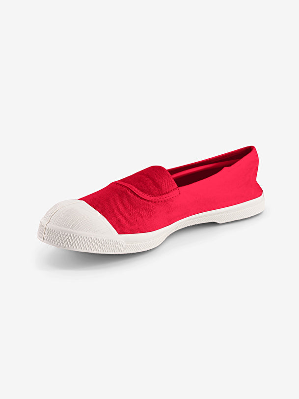 The Bensimon tennis shoes are available in an elastic version, easy to put on. Thin and light, handmade in Europe, it is made from rubber and natural cotton. Available in a wide range of colors, it is manually tinted in France in our workshops, which leaves a slight margin of variation between models and gives it a unique imprint.